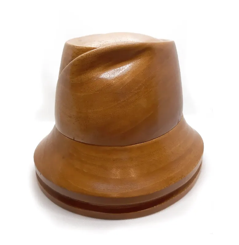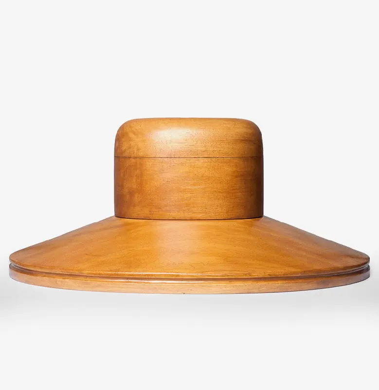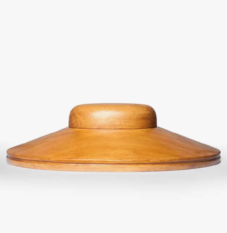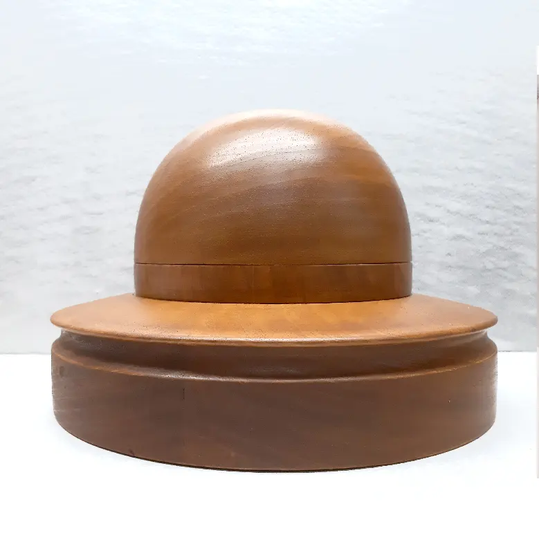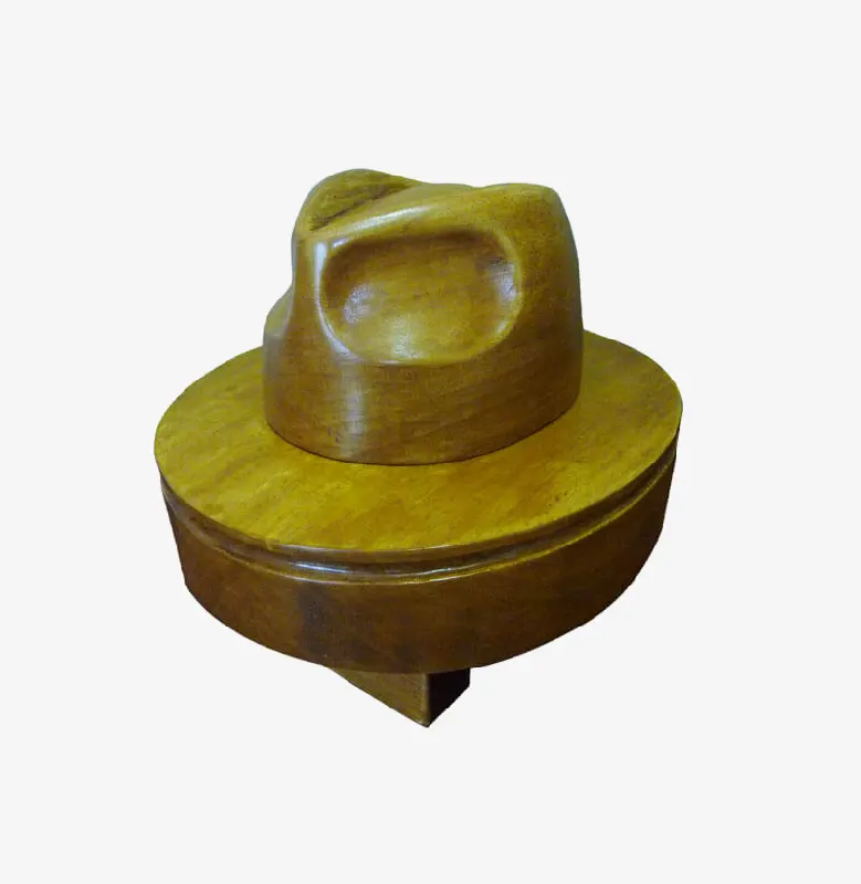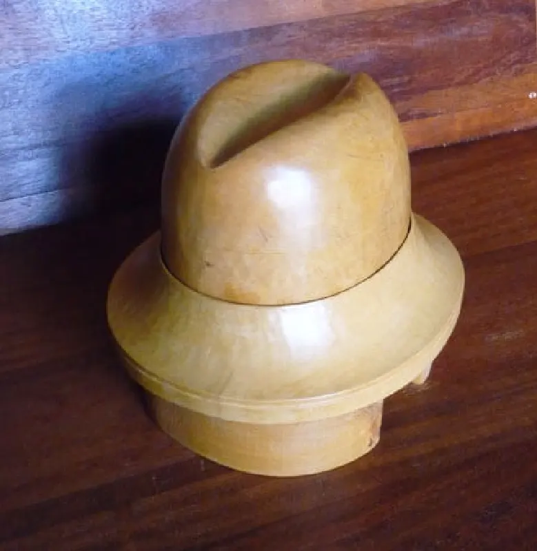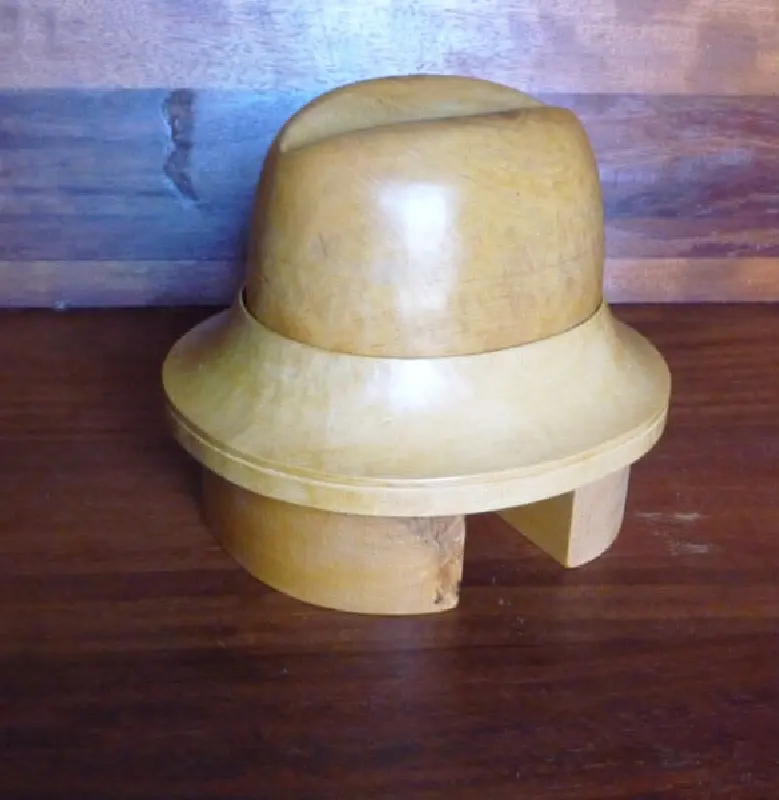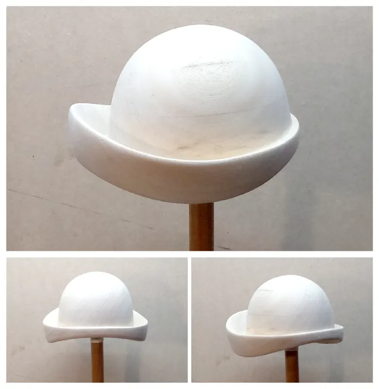 Horma completa para sombrero modelo Cloche con copa realzada sobre Hormillón y patas de apoyo.