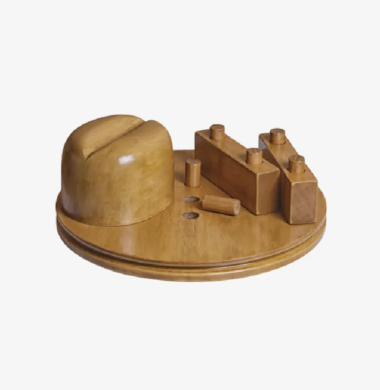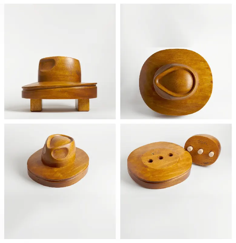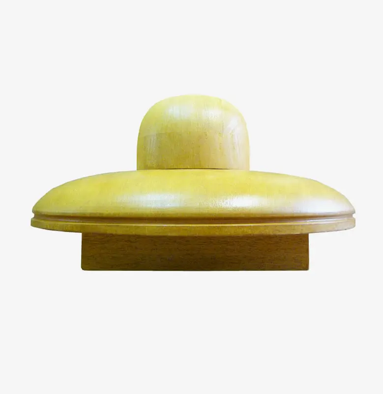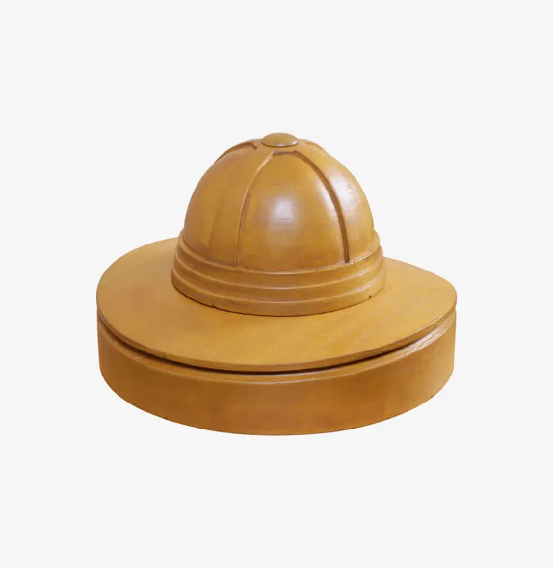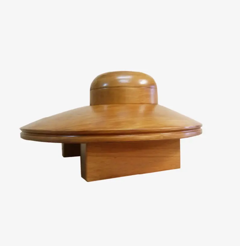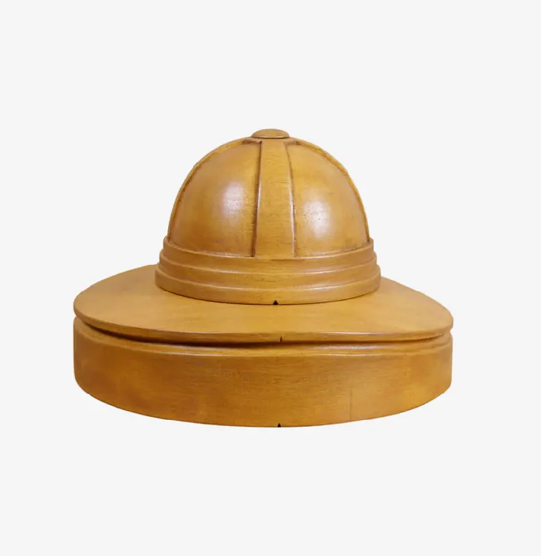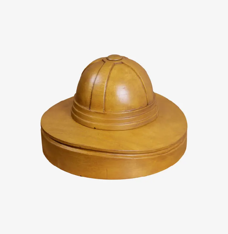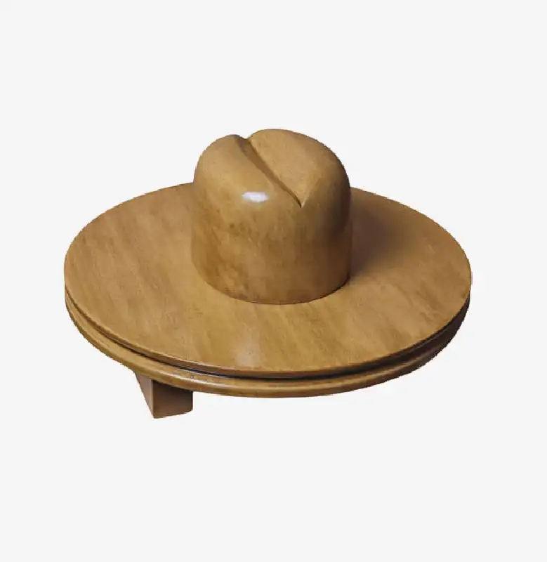 Horma completa para sombrero modelo Cloche con copa realzada sobre Hormillón y patas de apoyo.