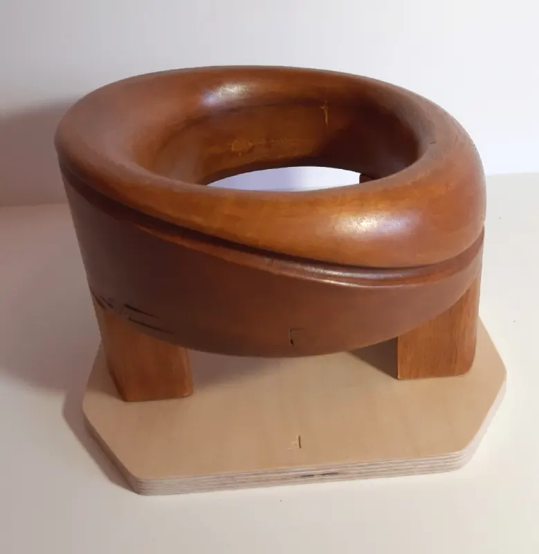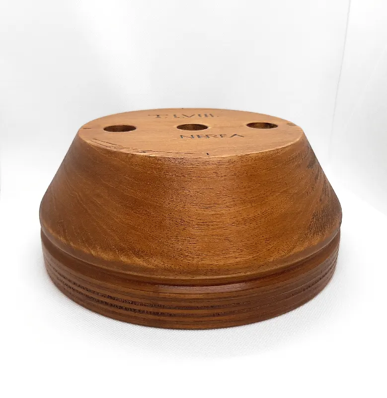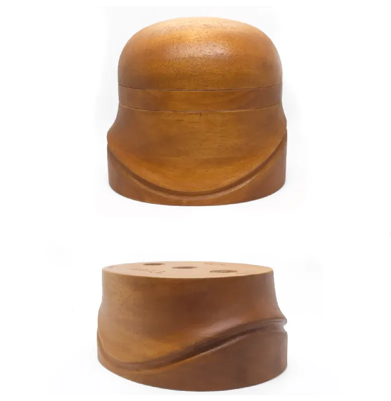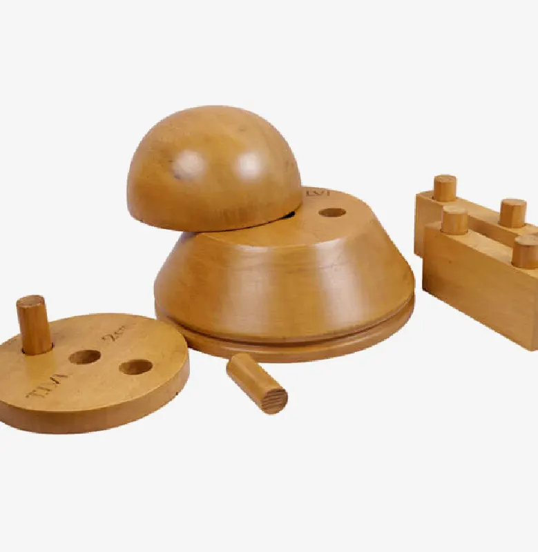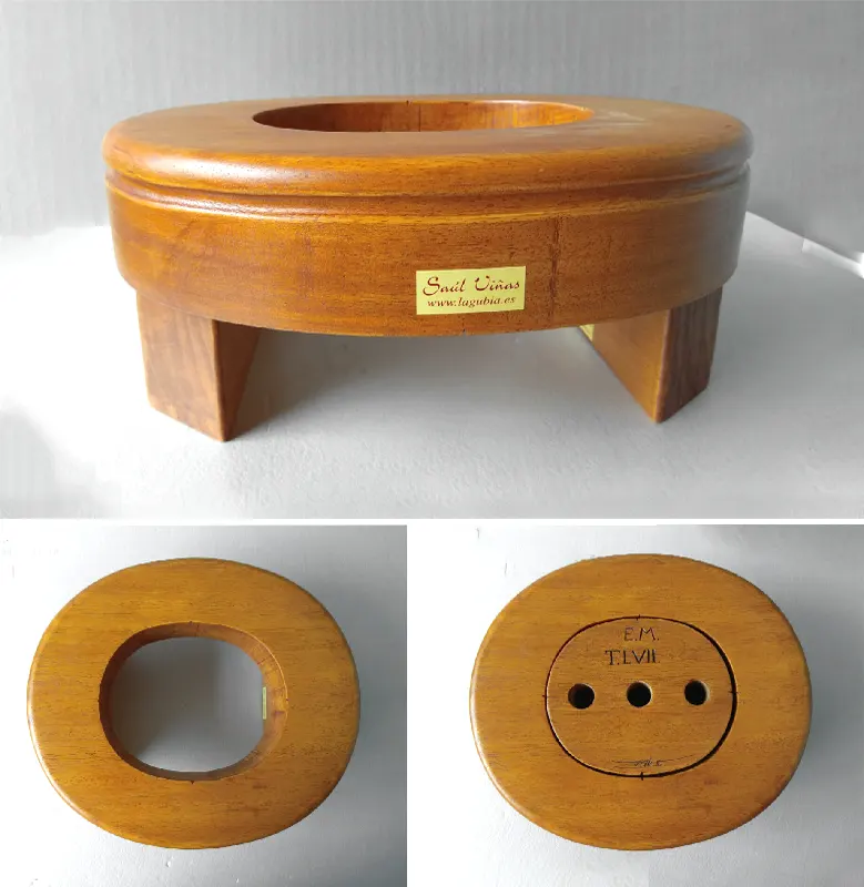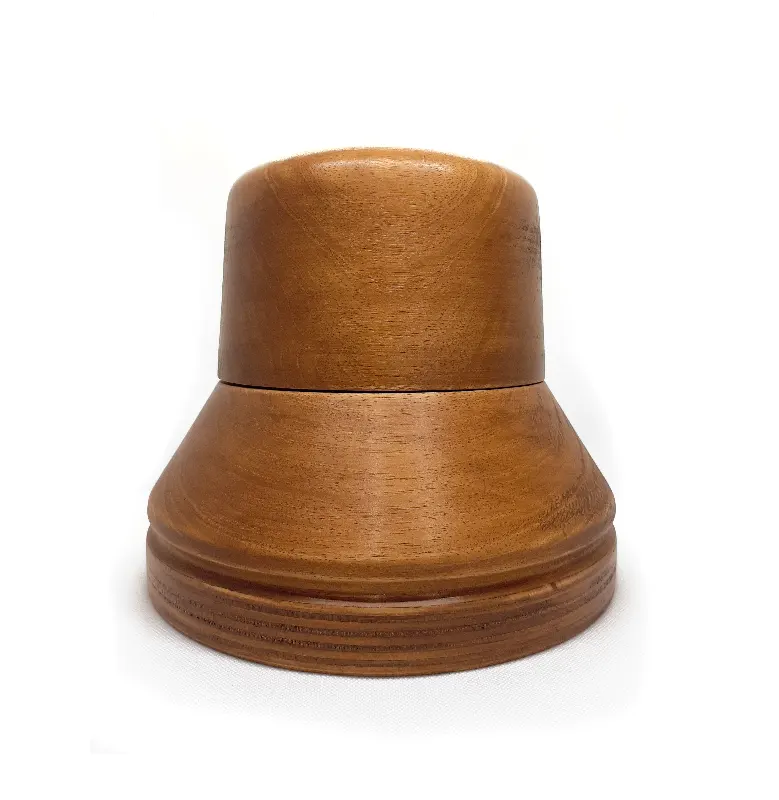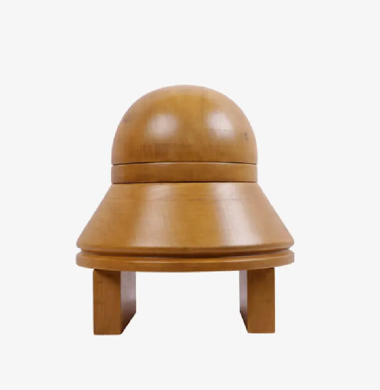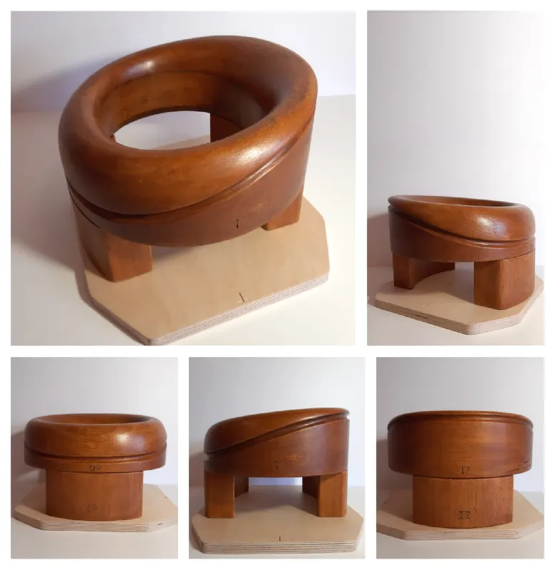 Horma completa para sombrero modelo Cloche con copa realzada sobre Hormillón y patas de apoyo.